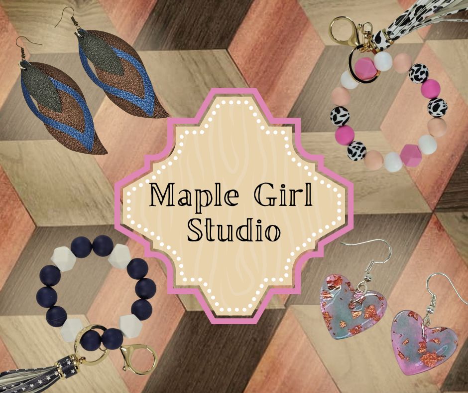 Maple Girl Studio ~ Leather, Resin, Silicone & Beaded Jewelry, Charcuterie Boards, Wooden Home Decor ~ Erin Slee, Williams Lake ~ 778-235-9416 / maplegirlstudio@gmail.com