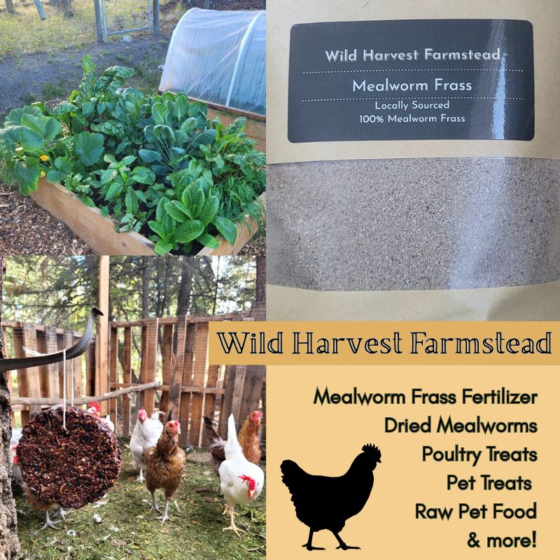 Wild Harvest Farmstead ~ Mealworm & Pet Products ~ James Michaloski, 108 Mile Ranch ~ 604-799-0235 / wildharvest farmstead@gmail.com